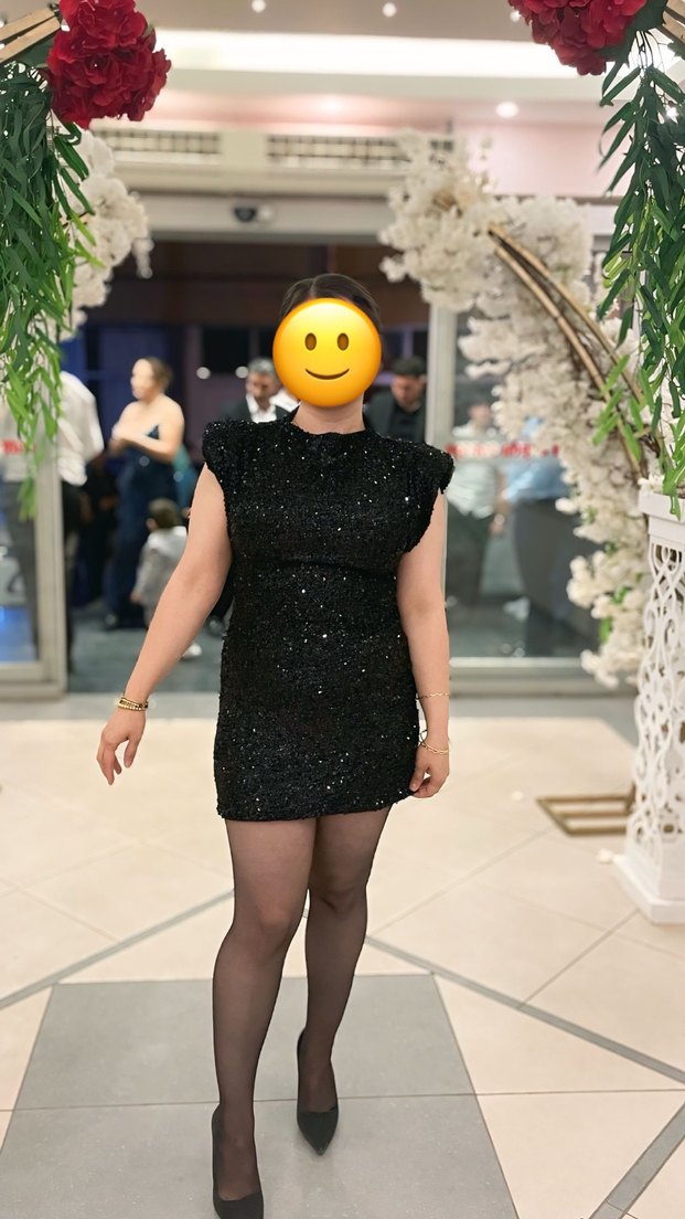 Siyah simli ve puantiyeli, yüksek yakalı, kolsuz, vücuda oturan mini abiye elbise, avant-garde parti tarzı için uygundur. ✨ tertemizdir ❤️