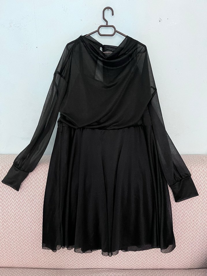 Trendyolmilla Siyah uzun kollu, bol kesim ve etekleri pileli simli elbise En 48 boy 98