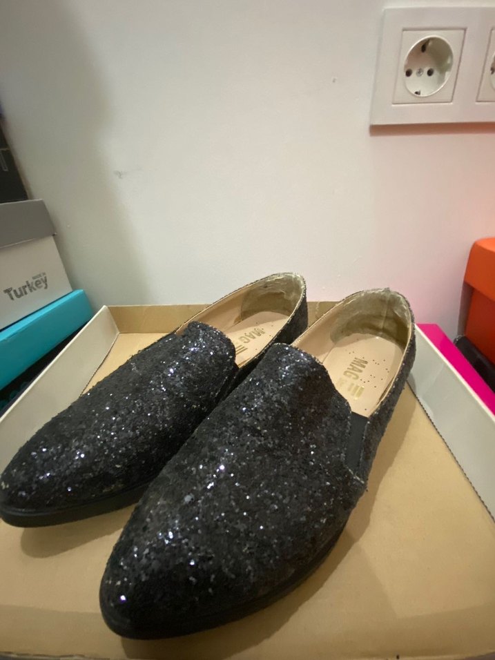 Siyah Simli Stiletto Topuklu Kadın Babet