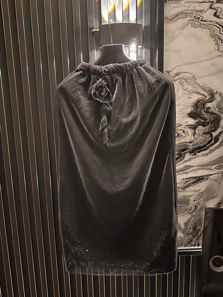 siyah, uzun boy etek, dökümlü tasarımı ve bol kesimiyle ipeksi simli bir kumaştan yapılmıştır. Gotik tarz ve düğünler için uygundur.