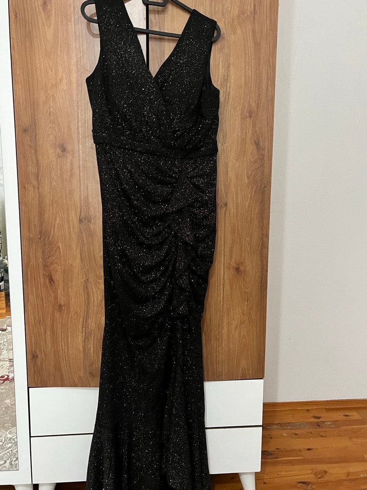 Siyah Simli Uzun Abiye Elbise