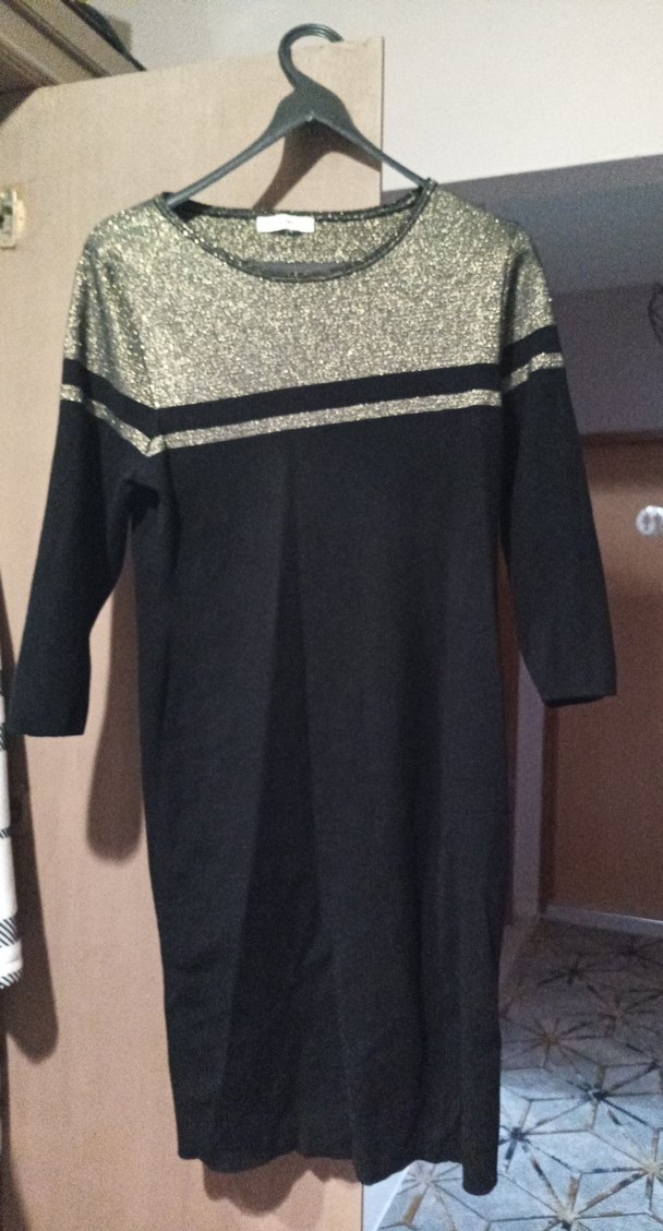 Simli detaylı, uzun kollu ve bisiklet yaka siyah triko elbise. İnce kesimli, gündelik ve trend sokak stili için uygun. ✨