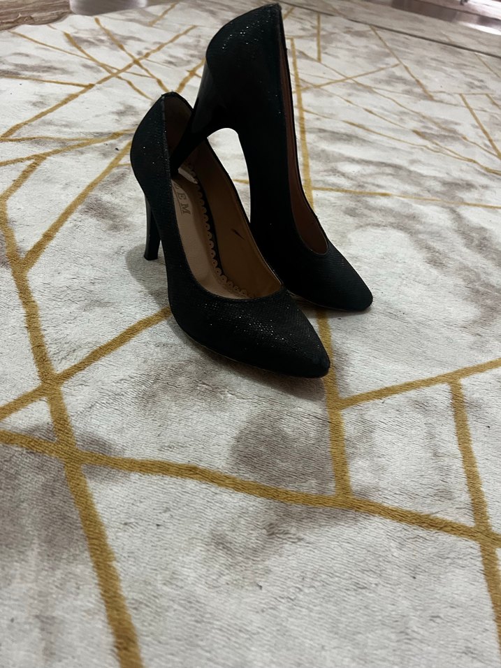 Siyah simli yılan desenli stiletto topuklu ayakkabı, kauçuk malzemeden, modern klasik tarzda ve ofis kullanımı için uygun. ✨marka temsili