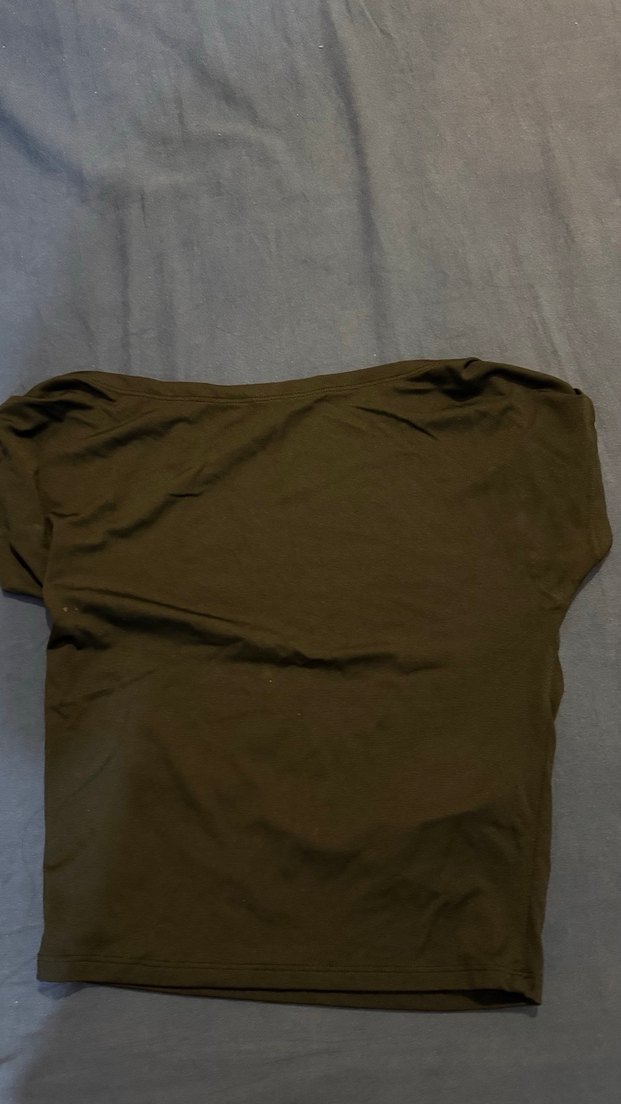 Kahverengi renk, keten kumaştan, salaş kesim hamile tişörtü. Kayık yaka ve kısa kollu, desen içermeyen sade tasarım günlük sokak modasına uygun.
