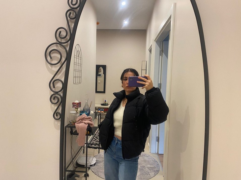 Siyah Şişme Denim Kadın Mont