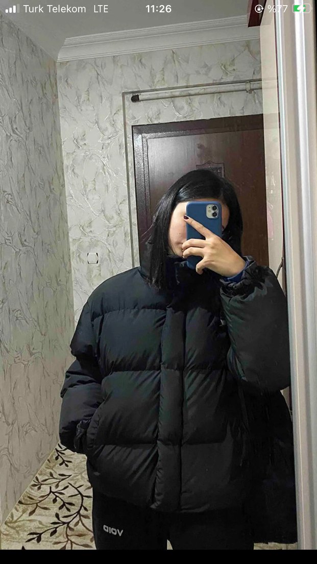 Siyah Şişme Kadın Kışlık Mont