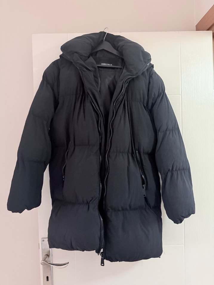 Siyah, fermuarlı cepli, yumuşak ve sıcak kumaştan yapılmış, kesimi vücuda oturan, notched lapel yaka detaylı kadın midi kışlık şişme mont. Rahat ve sıcak tutar. ✨ Boyum 168 kilom 58 :)