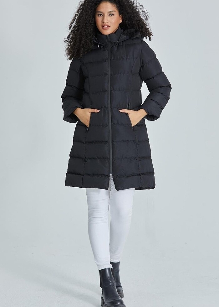 Siyah renktedir. 40 bedendir ama 42 bedenr de rahatlıkla olur. 2 defa bile kullanılmamıştır yeni gibidir. Şişme mont sevemediğim için satıyorum .