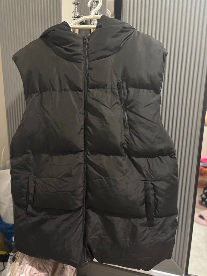 Yüksek yakalı, fermuarlı, siyah renkli kolsuz yelek. Yumuşak ve sıcak kumaştan, cep detaylı, günlük kullanıma uygun. L beden 65kgyim boyum 170
