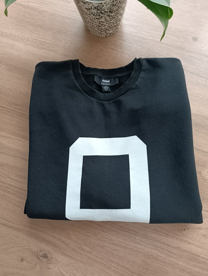 Siyah renkli, baskılı kare desenli, yuvarlak yakalı ve uzun kollu erkek sweatshirtü. Rahat kesimli ve yumuşak dokulu kumaştan üretilmiştir.