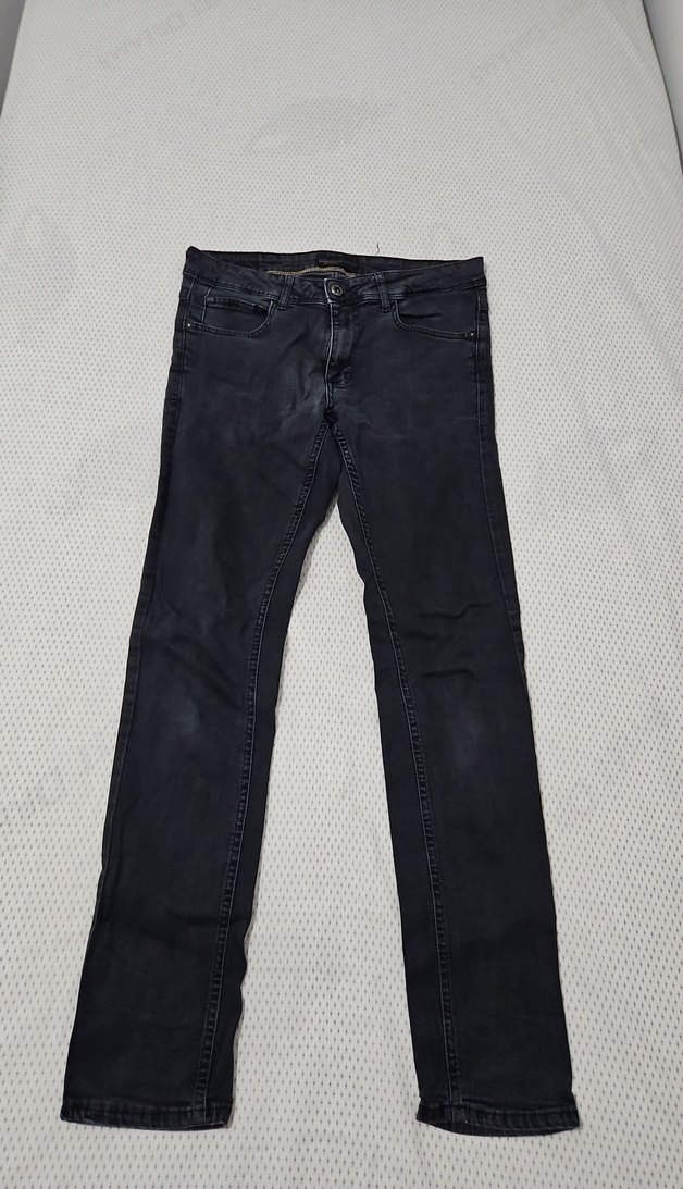 Siyah skinny fit erkek kot pantolon, günlük kullanım için rahat ve şık bir sokak stili sunar. W32 L33