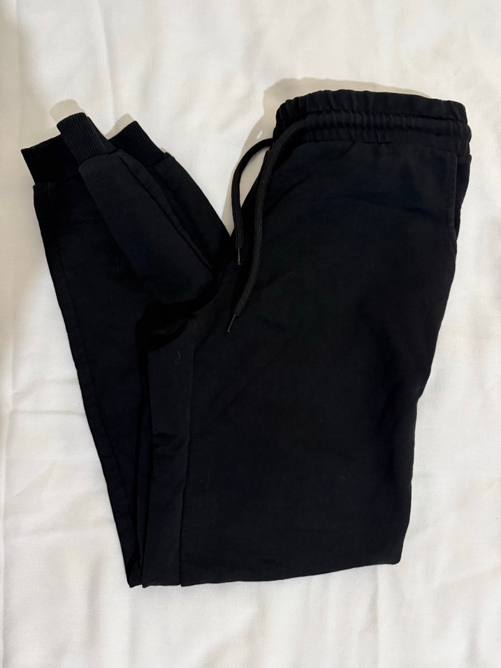 Siyah renkte, slim fit kesime ve midi boyda eşofman altı. Yumuşak ve sıcak kumaştan, rahat ve şık bir dış mekan kullanımı için uygundur. Desensiz tasarıma sahiptir.