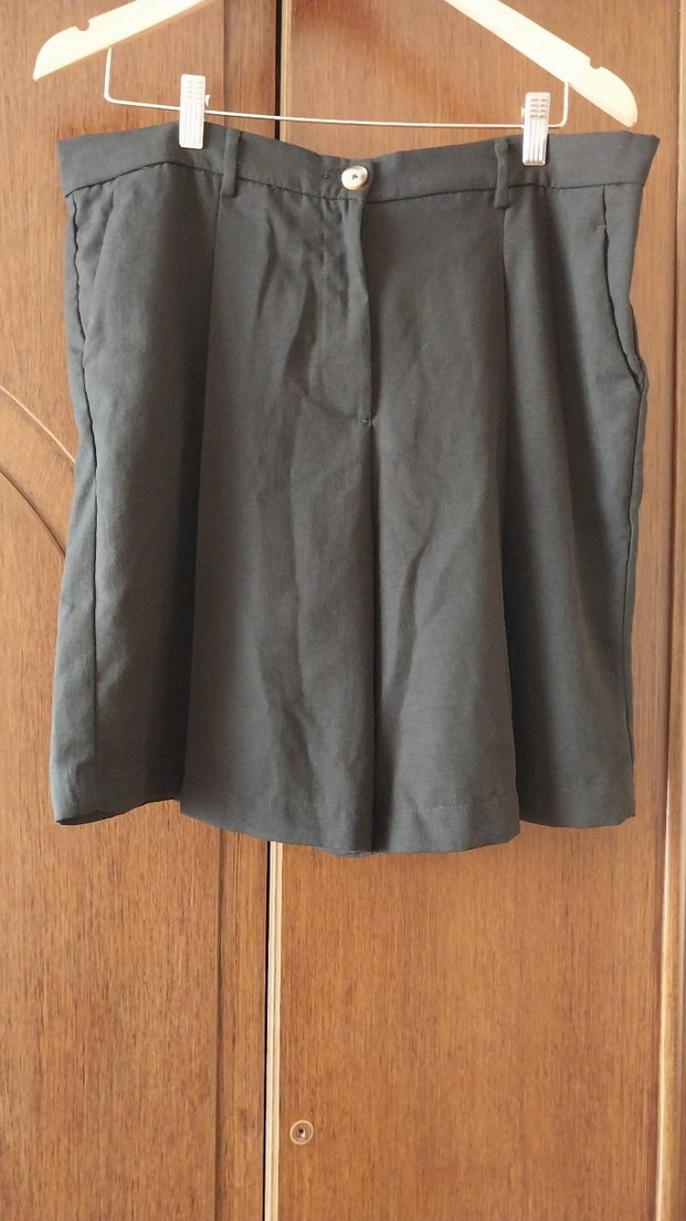 keten kumaştan yapılmış, bol kesim pilili şort Normal midi boyda, sade ofis kullanımı için uygun. bel cevresi 97 cm boy 52 cm