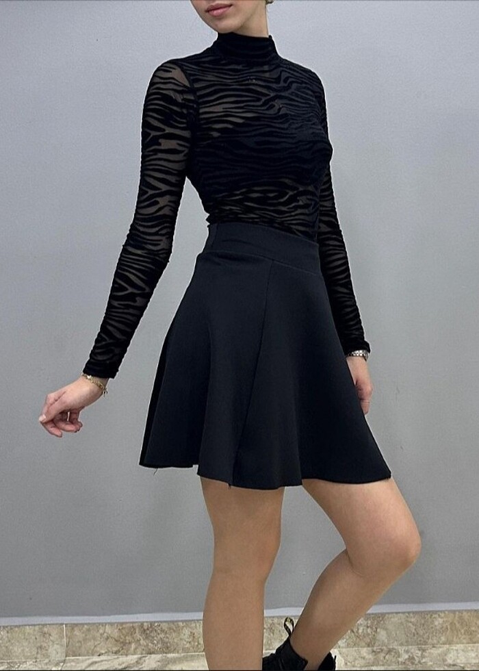 Siyah Şortlu Mini Etek