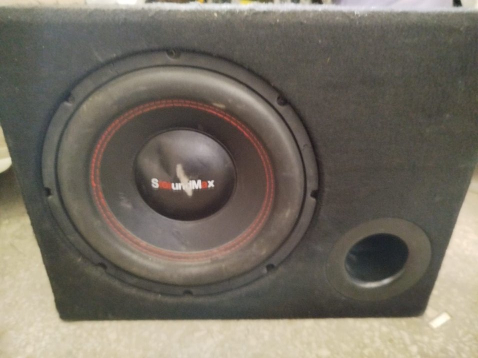 Siyah SoundMax hoparlör, renkli tasarım ve güçlü ses sunar. Üzerinde "11" işareti bulunur. Anfi hoparlör iki parça olarak sorunsuz çalışır