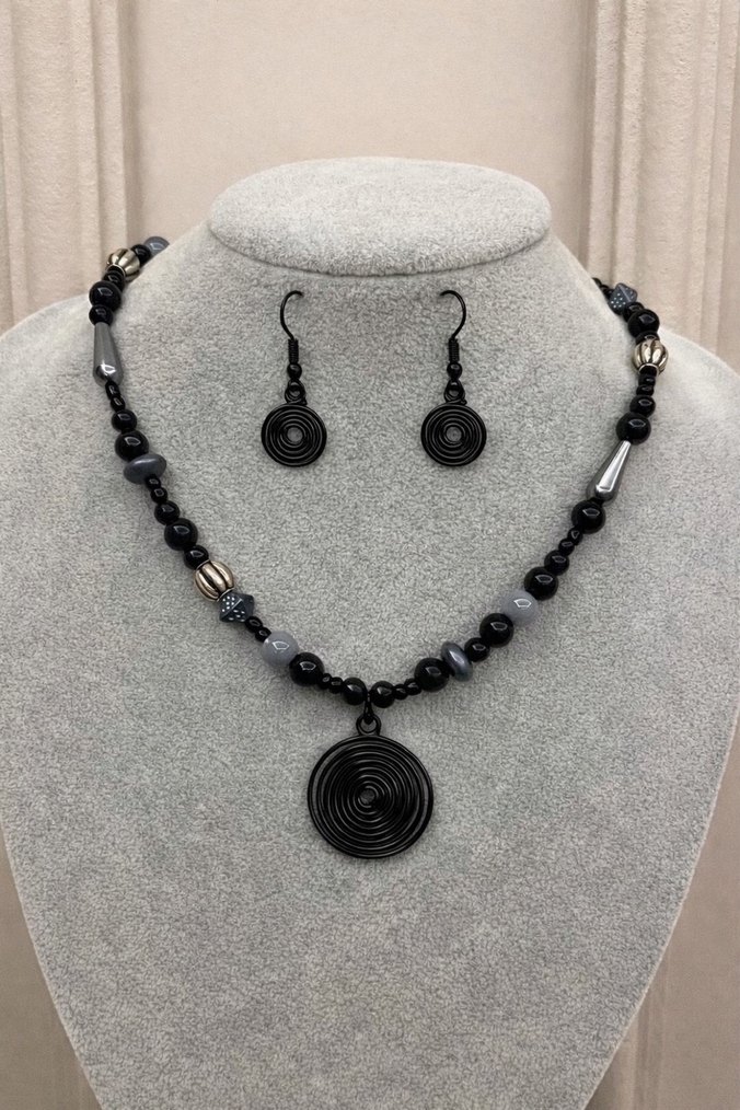 Siyah spiral Gotik Kolye ve Küpe Seti