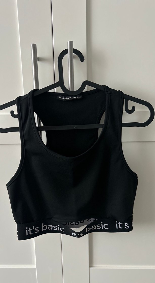 Siyah renkte rahat kesimli spor büstiyer. Alt bandında "it's basic" yazısı bulunur. Sıfır üründür
