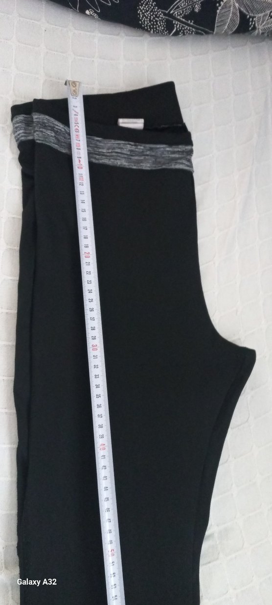Siyah, elastik bel bantlı, sentetik kumaştan yapılmış, yuksek bel kesim spor hafif ispanyol paça tayt. Spor ve sokak giyimi için uygundur.