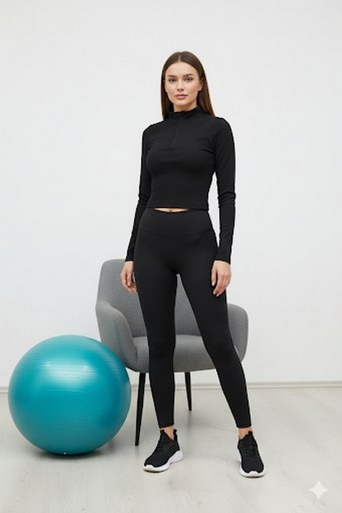 Siyah Spor Kadın Crop