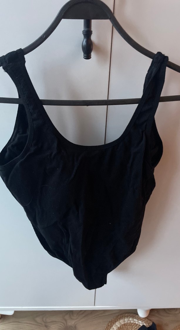 Kolsuz, siyah ve midi boyda olan bu dar kesim mayo, desen içermeyen sade tasarımıyla cesur ve sportif bir görünüm sunar.