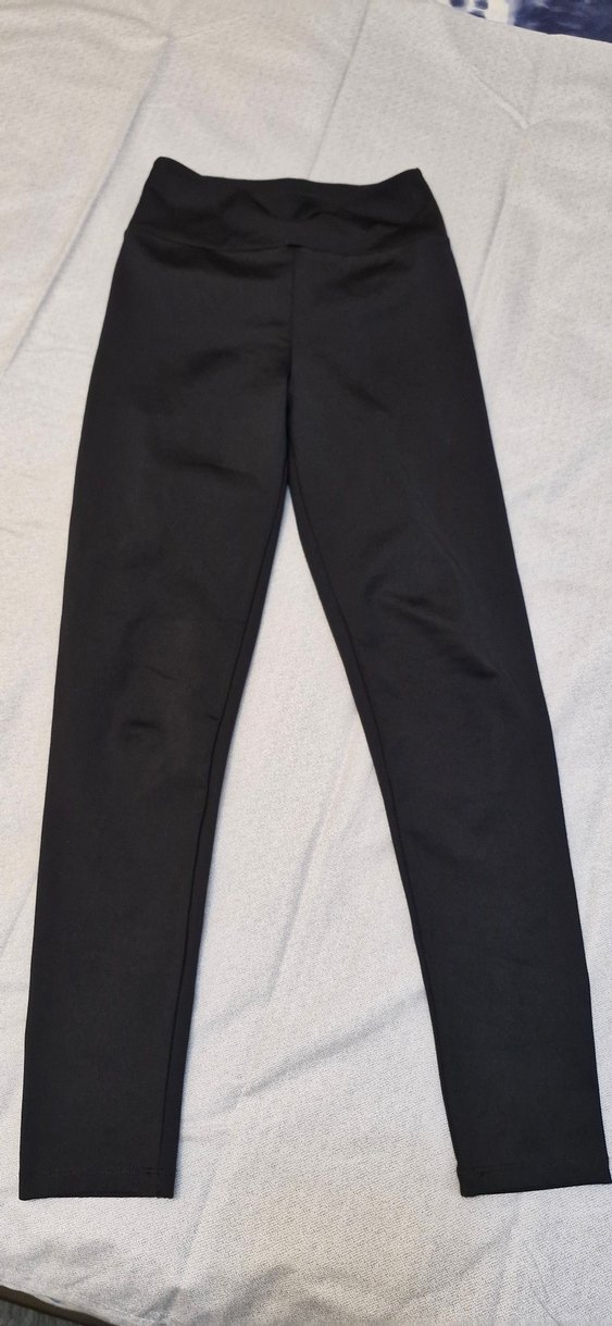 Siyah regular fit kesim, spor ve sokak tarzına uygun sentetik kumaştan kadın taytı.