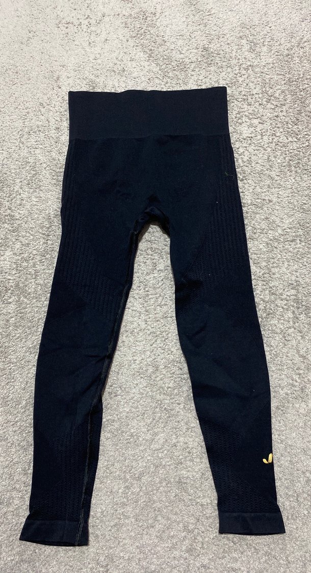 Siyah, esnek sentetik kumaştan yapılmış, normal boyda ve vücuda oturan kadın taytı. S ile uyumludur çok güzel toparlıyor