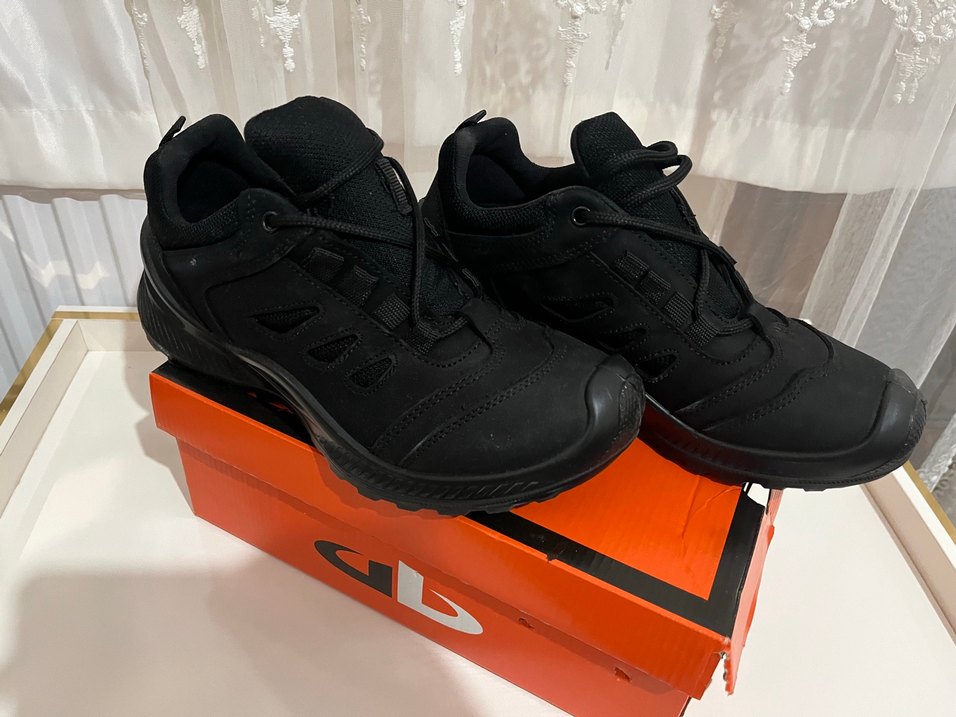 Spor ve sokak stili için uygun, kauçuk tabanlı ve bağcıklı siyah outdoor ayakkabısı. Trendy casual kullanıma uygundur. Orijinal marka Özel üretim polis ayakkabısı