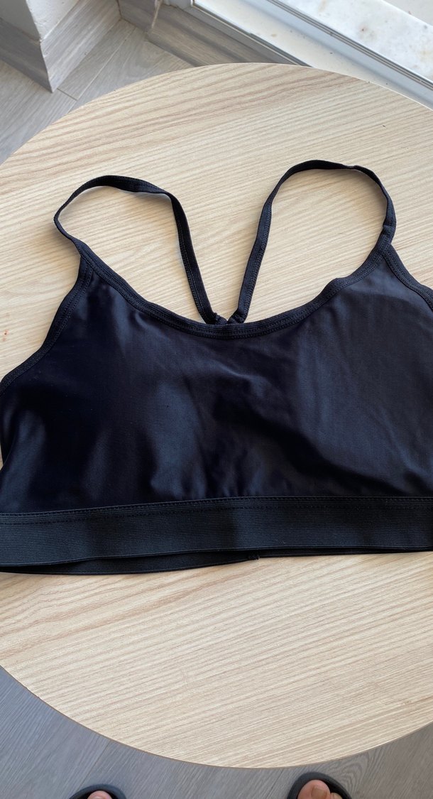 İnce askılı, sade tasarımlı siyah spor sütyeni. Streetwear ve athleisure tarzlarına uygundur, normal midi boyda rahatlık sağlar.