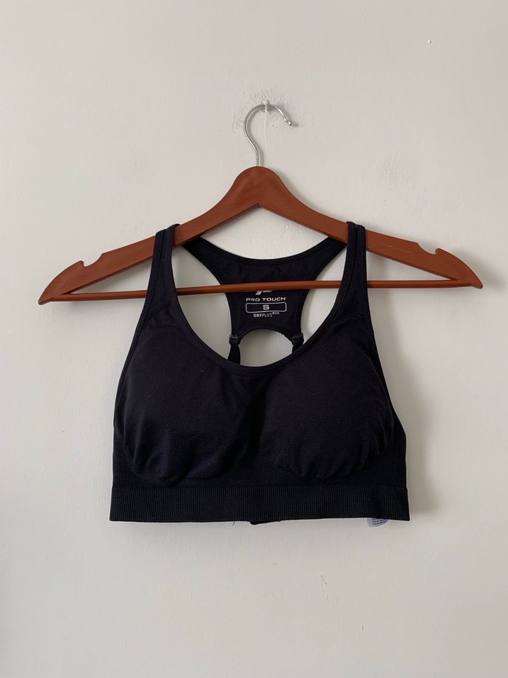 Siyah, sırt kısmı racerback tasarımlı, rahat destek sunan athleisure spor sütyeni. Desensiz ve midi uzunlukta.
