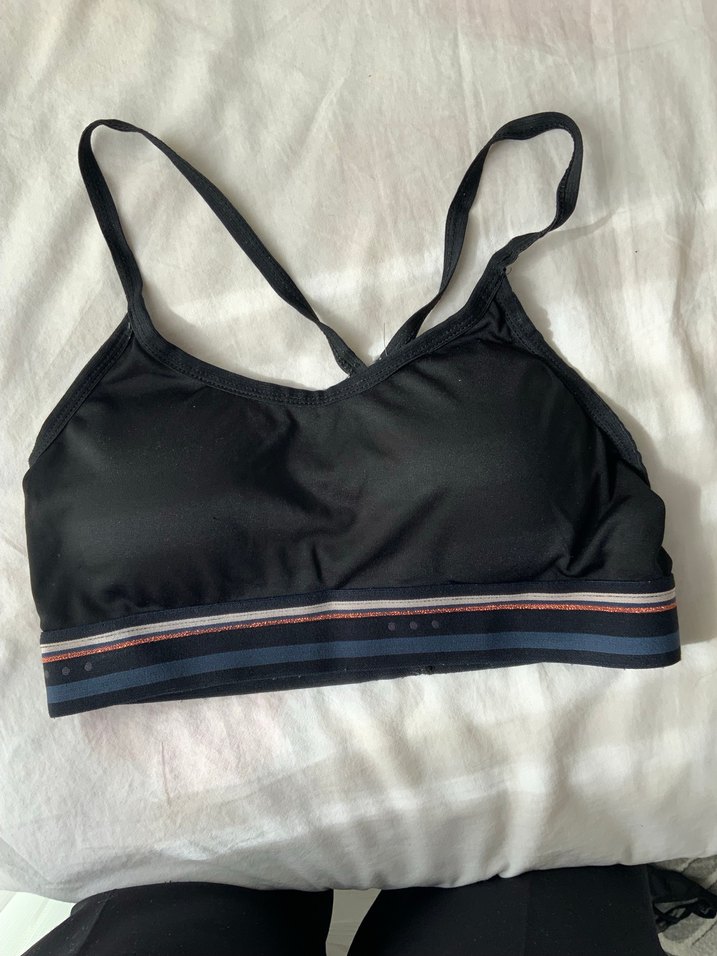 Bu siyah spor sütyeni, ayarlanabilir askılar ve ince çizgili destekleyici elastik bant ile sade bir tasarıma sahiptir. Sokak stili için uygundur.