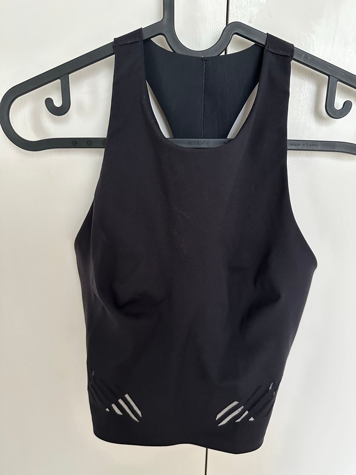 Bu siyah spor sütyeni midi boyda, sokak stiliyle sade ve desensiz tasarıma sahiptir, athleisure için uygundur. OYSHO s bende