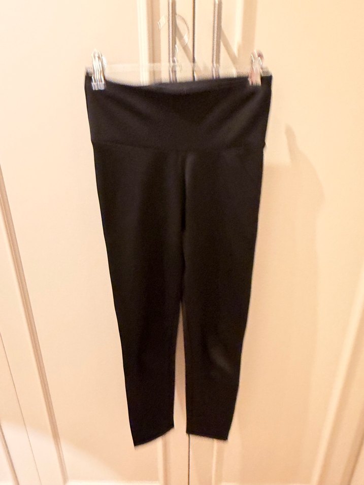 Sentetik kumaştan yapılmış siyah, vücuda oturan spor tayt. Aktif yaşam ve rahat sokak stili için uygundur.