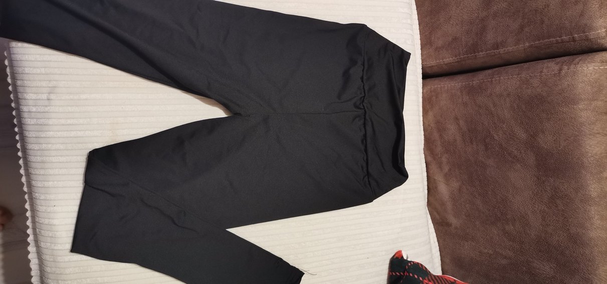 Siyah, v yaka detaylı, midi boyda, rahat sentetik kumaştan yapılmış spor tayt. Günlük kullanıma uygun, şık ve sade athleisure tarzda.