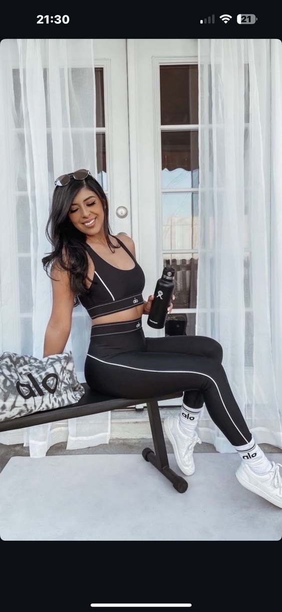 Yurtdışı Marka butikten alındı giyemedim.Siyah, baskılı detaylara sahip, elastik bel bantlı, mini boy, spor tayt ve sütyen takımıdır. Sokak stili athleisure görünümü sunar.