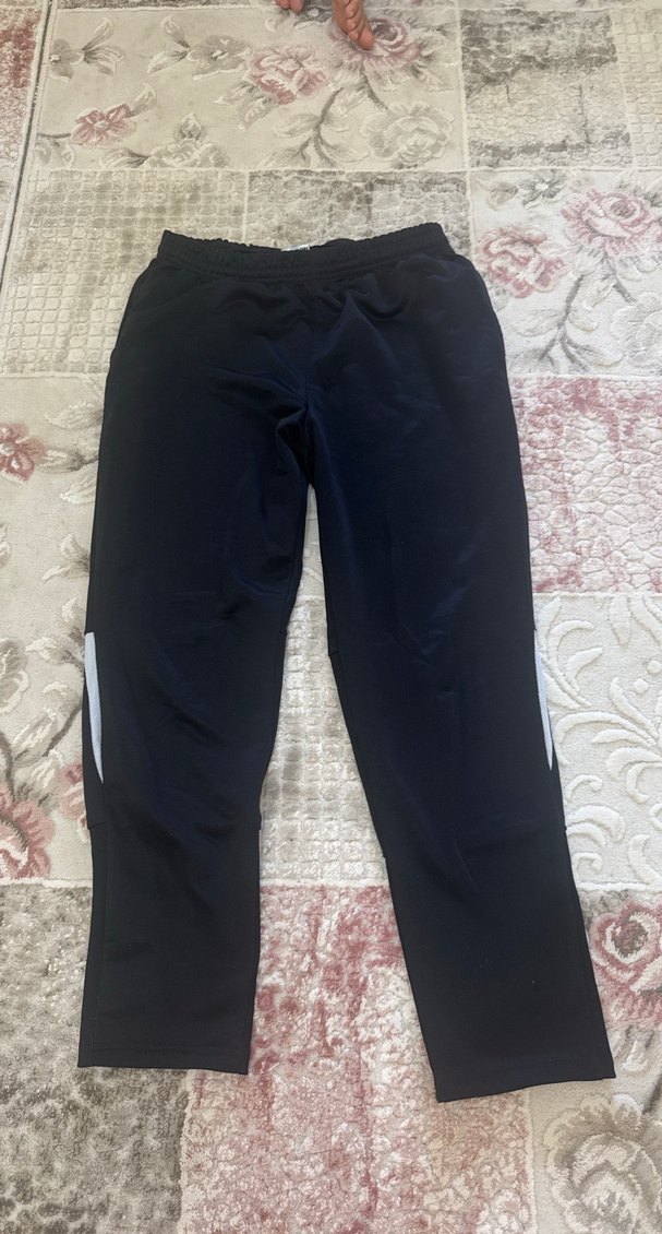 Siyah, sentetik kumaştan üretilmiş, elastik bel bantlı sporcu bol kesim eşofman, spor ve günlük kullanıma uygundur.