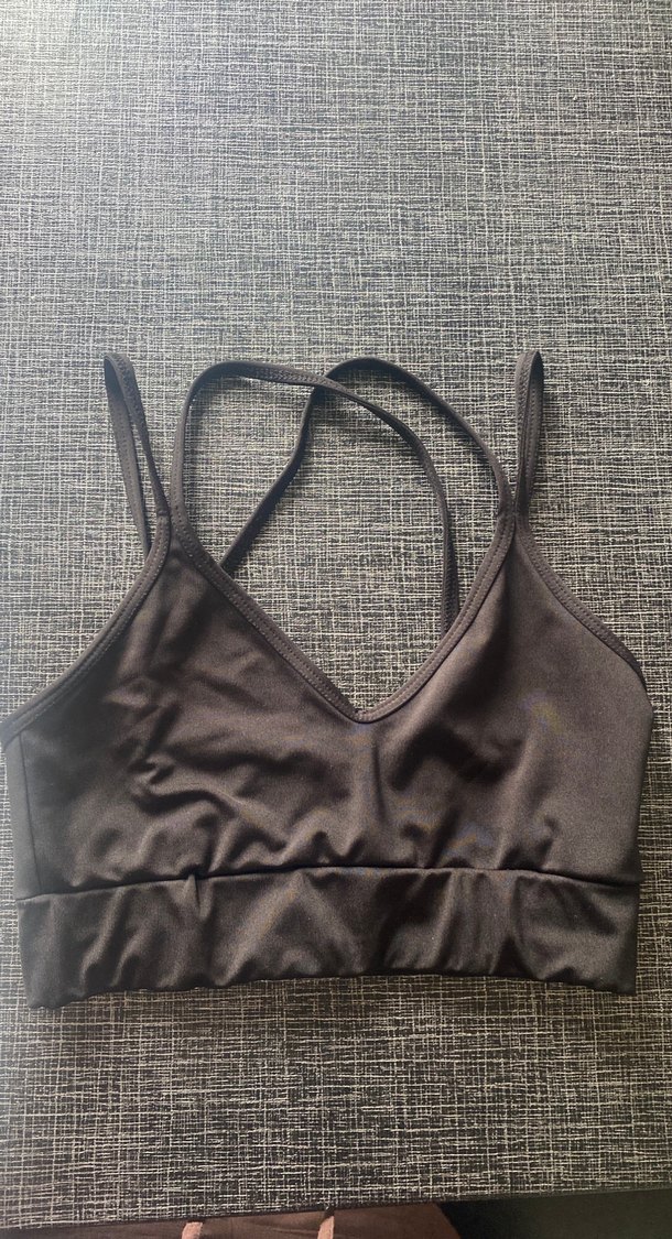 İnce askılı, düz tasarımlı siyah sporcu sütyeni, streetwear ve athleisure tarzlara uygundur. S/M uyumludur.