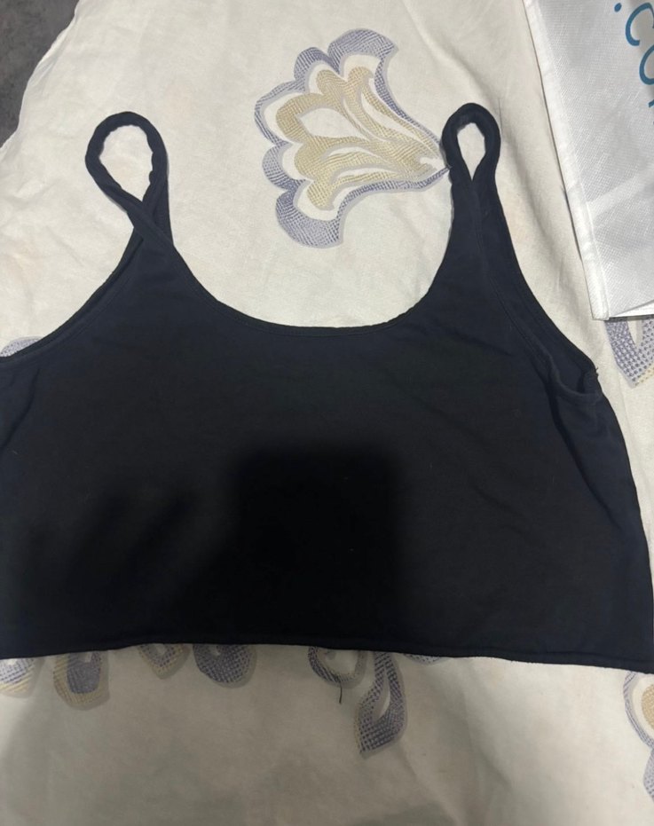 Siyah, desensiz sporcu sütyeni, normal uzunlukta askılarla athleisure ve streetwear tarzına uygundur.