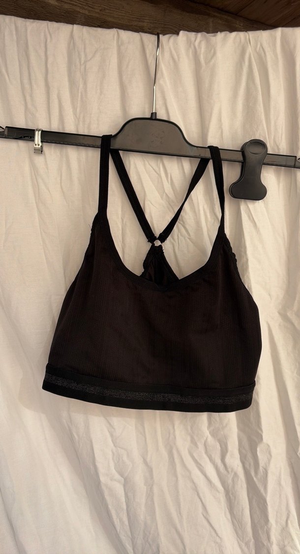 Siyah renkli, normal uzunlukta ve midi kesim sporcu sütyeni. Sade, desensiz tasarımı ve çapraz sırt detayıyla sokak stiline uygun.