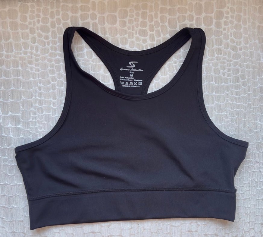 Sıfır ürün, ölçüleri görselde Siyah renkli, sırt kısmı racerback kesim olan, orta boy rahat destek sağlayan sporcu sütyeni. Düz ve esnek kumaştan, streetwear tarzına uygun.