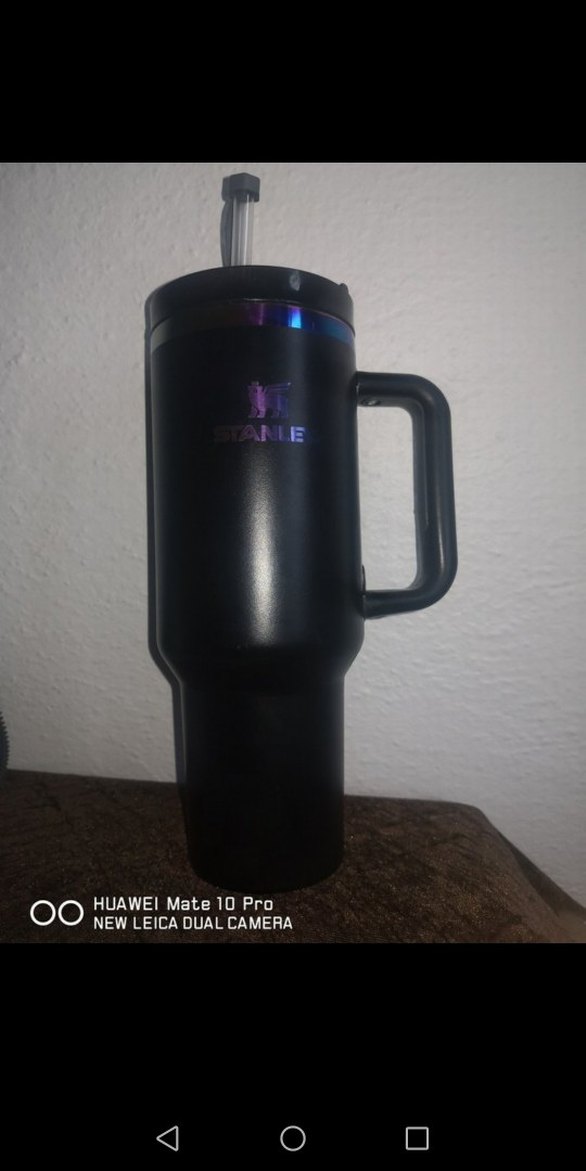 Siyah Stanley termos bardak, sağlam kulp ve pipetli kapağa sahiptir. Dayanıklı tasarımıyla iç ve dış mekanlarda kullanılabilir. ☕kulbu tamir gördü sorunu yoktur orjinaldir