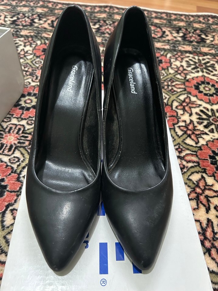 Siyah stiletto. Topuk boyu 8-9 cm’dir.