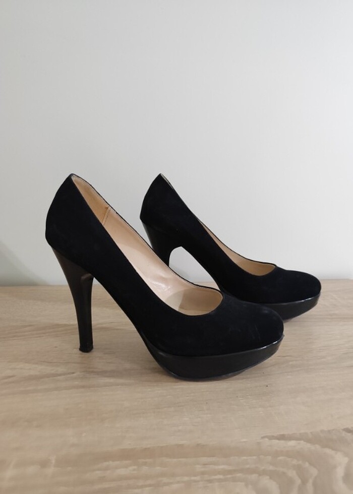 Sadece 1 kez kullanıldı. Ön kısmında rugan detayı vardır. Topuk boyu 10 cm'dir.