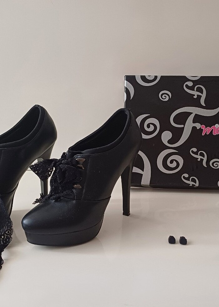 Siyah Dantel Bağcıklı (isterseniz değiştirebilir) Yedek topuklar Kendi kutusunda gönderilecektir 37 Numara Mağazadan alındı hiç giyilmedi.