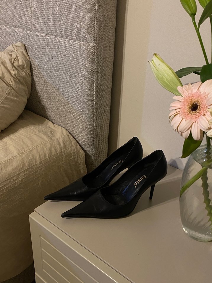 Siyah, desensiz rugan stiletto topuklu ayakkabı