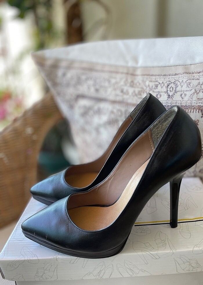 Siyah, 37 numara, deri, 11 cm ve ince topuk stiletto ayakkabı. Çok az kullanıldı. #stiletto #ayakkabı
