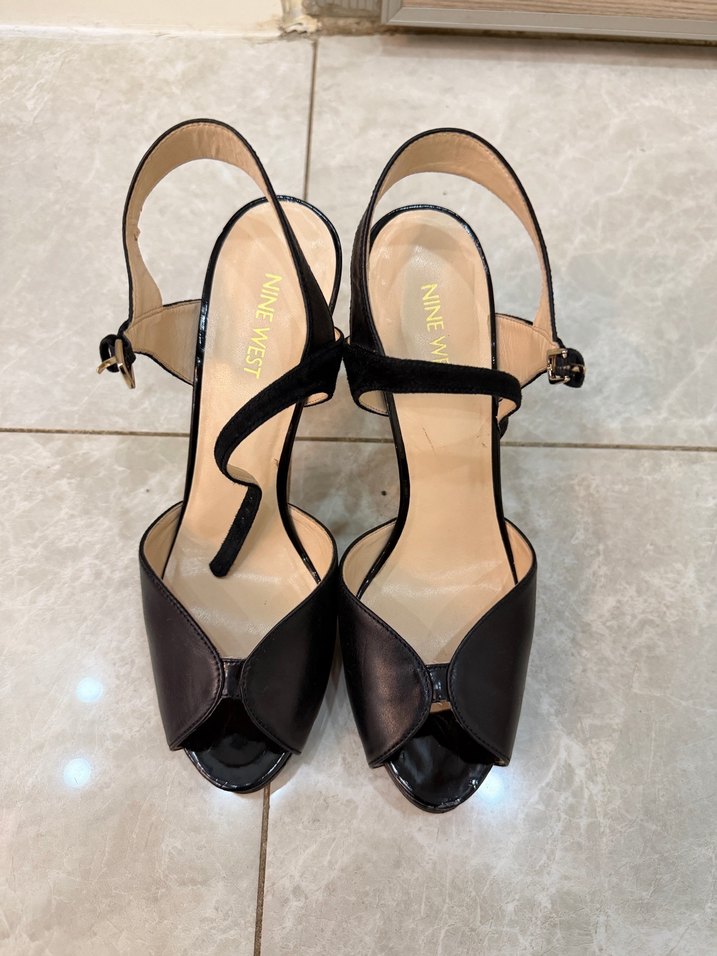Siyah stiletto topuklu, tokalı kayışlı, minimalist ve gotik tasarımlı ayakkabı. Kauçuk malzemeden, düğün ve şık etkinlikler için uygun.