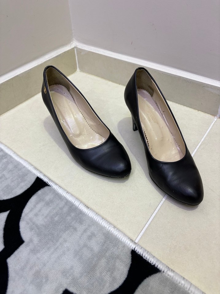 Siyah, desen içermeyen stiletto topuklu ayakkabılar, modern klasik ve zahmetsiz şıklık sunar. Ofis için uygundur. Temiz kullanılmıştır ufak tefek boya ATMları mevcuttur dikkatli bakıldığında belli oluyor