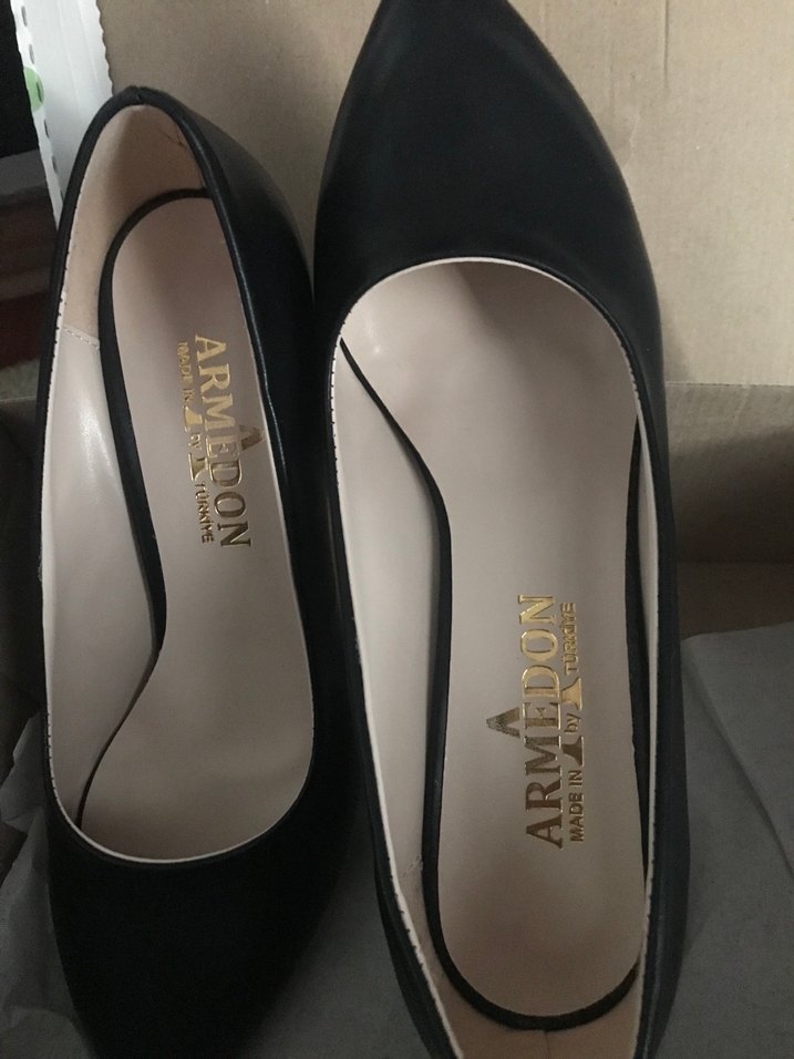 Siyah stiletto topuklu, kauçuk malzemeden yapılmış, günlük kullanıma uygun cesur ve zahmetsiz şıklık sunan kadın ayakkabısı. Marka: ARMEDON. Hiç giyilmedi maalesef iade süreci geçtiği için iade edemedim. Büyük geldiğinden satışta.Etiketsiz geldi..İADESİ YOKTUR ‼️