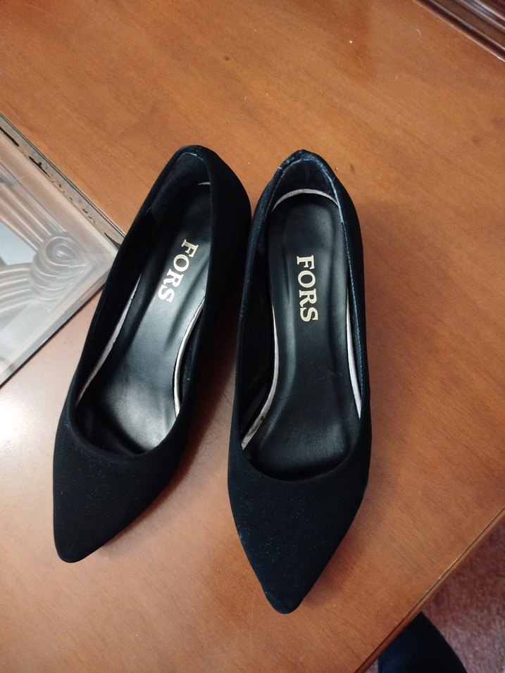 Kauçuk malzemeden siyah stiletto topuklu, tokalı ayakkabı. Baskılı deseni ve minimalist tarzıyla ofis kullanımı için uygundur. Marka: FORS.