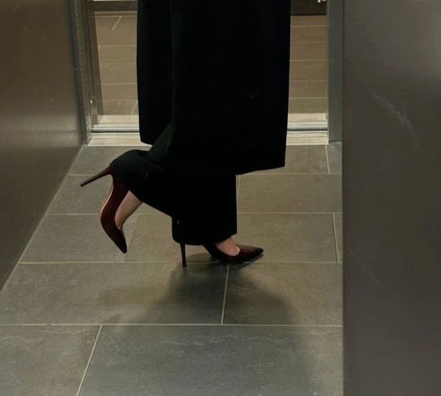 Siyah renkli, nubuk görünümlü stiletto topuklu ayakkabılar, ofis için çağdaş iş şıklığı sunar. Slit detayına sahiptir.